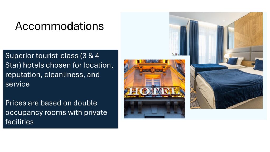 The cost per person is $4,619 inclusive of flights, accommodations, breakfasts and dinners.