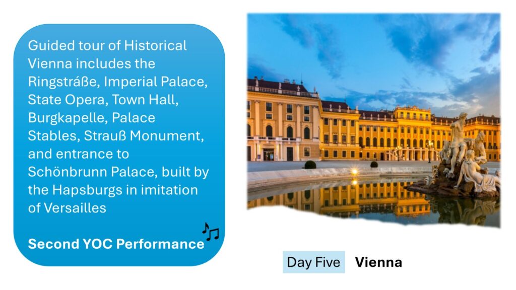 As part of this incredible journey, our talented young musicians will explore two of Europe’s most iconic musical cities, performing in renowned venues and immersing themselves in the rich cultural and historical heritage of Austria – the heartland of classical music.